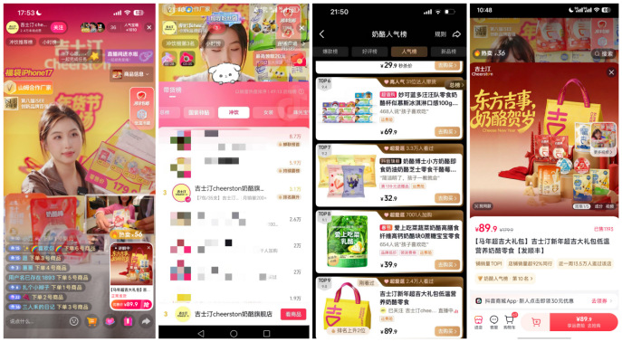 开播首日,吉士汀直播间即登上抖音人气榜第三名、乳制品类目带货榜第一名。2月14日情人节,品牌推出26年新品大满贯”马年超吉大礼包",单场直播热卖超千单。截至2月20日,其抖音旗舰店一周吸引13.5万人次浏览,单品链接冲入抖音全站奶酪人气榜前十,同时占据类目榜、直播榜、带货榜三榜第三。